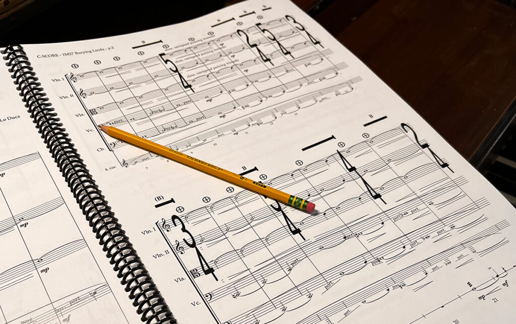 To replicate the precision of a recording stage, the musicians perform with sheet music and synchronized cues on video monitors that display timing and measure counts—essentially a digital conductor. (Photo: Black Ink Presents)